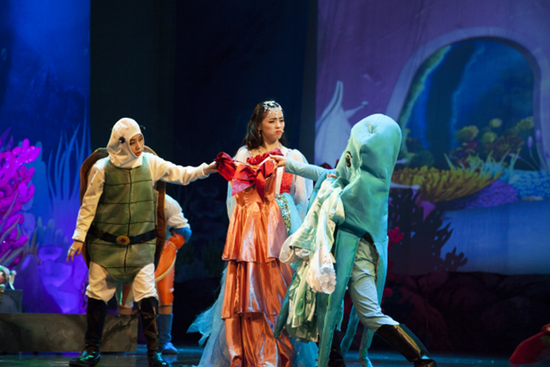 “在十五岁生日的那一天,美人鱼得到祖母的许可,浮出海面,坐在月光底下的石头上,与海面掠过的飞鸟玩耍,遥望海岸上森林、城堡里的灯光,海平线上驶来轮船,故事就在这时发生了……”