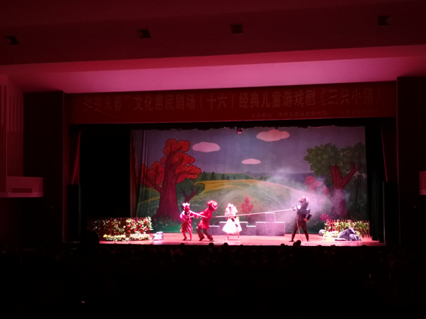 最后,小猪们找到了战胜大野狼的方法......和现场的小朋友一起拿出了棒槌打跑了大野狼,小猪们获得了胜利。
