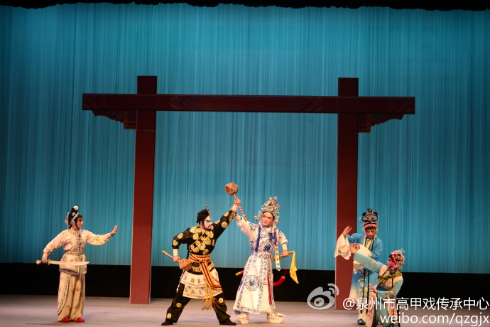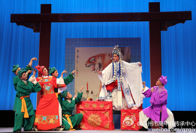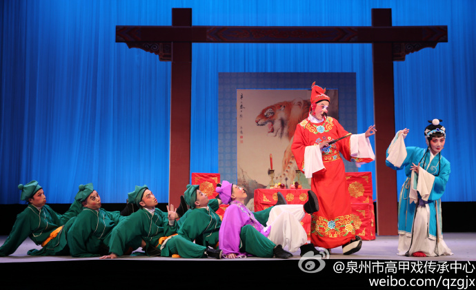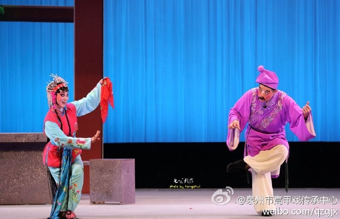 “醉美永春”文化惠民剧场上演了一门具有独特魅力的戏曲艺术——高甲戏《大闹花府》。高甲戏是戏剧丑行发展最为完备的剧种,它把戏曲中的丑角艺术发挥到登峰造极。《大闹花府》既有文戏又有武戏,故事鲜明,题材突出。优美的音乐,男女丑角风趣幽默的表演,和台词中包含的众多闽南俚语,常常能使观众开怀大笑。
